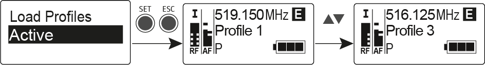 UP/DOWN drücken. Das gewählte Profil wird geladen, Sie hören das