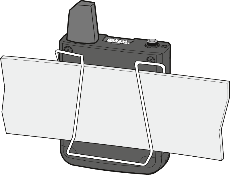 Befestigen Sie den Taschensender mit dem Gürtelclip an der Kleidung.