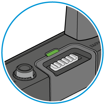 LED leuchtet grün: Die Funkverbindung zum Empfänger ist