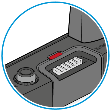 LED leuchtet gelb: Der Taschensender wurde mit seinem Schalter