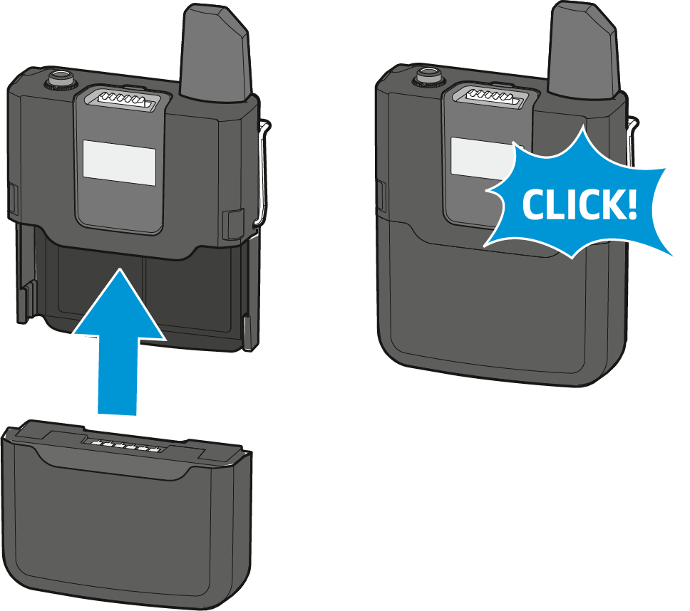 Sie können den Taschensender mit dem mitgelieferten Akku BA 30 betreiben. Der Akku muss vor der ersten Verwendung geladen werden. Der Akku muss zum Laden nicht aus dem Taschensender herausgenommen werden.