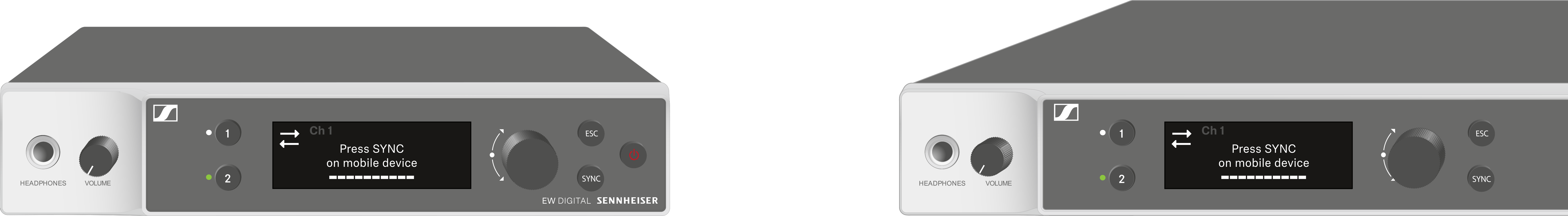 Drücken Sie an den Empfängern EW-DX EM 2 und EW-DX EM 2 Dante die Taste CH 1 oder CH 2 und am Empfänger EW-DX EM 4 Dante