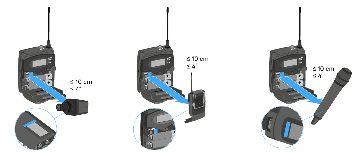 Sie können Sender und Empfänger der Serie ew 100 P G4 über die Infrarot-Schnittstelle des Empfängers synchronisieren.