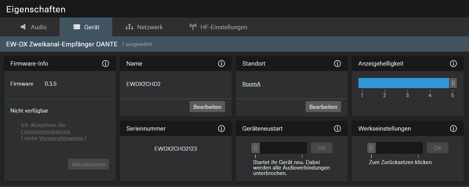 Slider zum Einstellen der Anzeigehelligkeit des ausgewählten Empfängers.