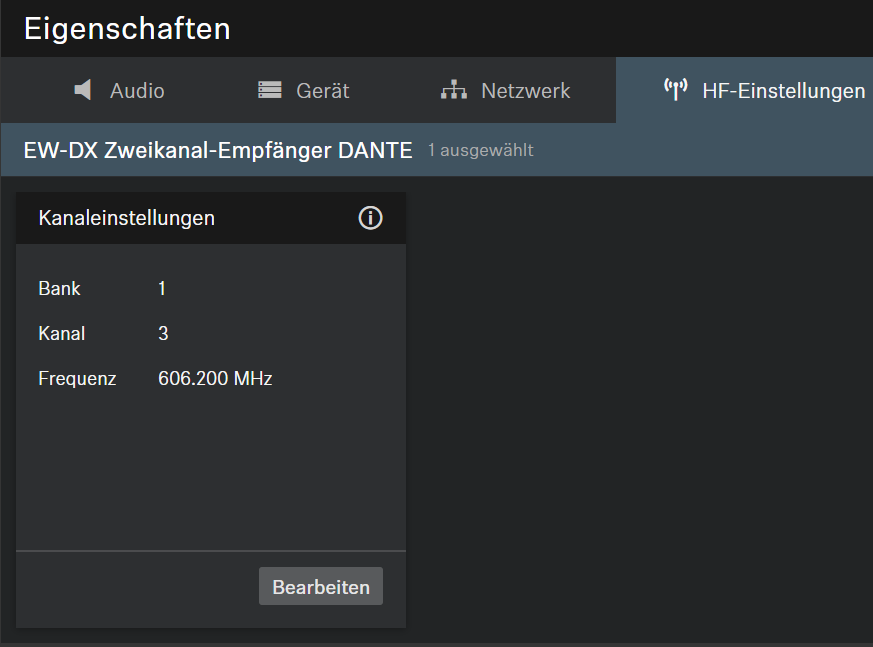 Zeigt die aktuelle Frequenz einschließlich Bank und Kanal an.