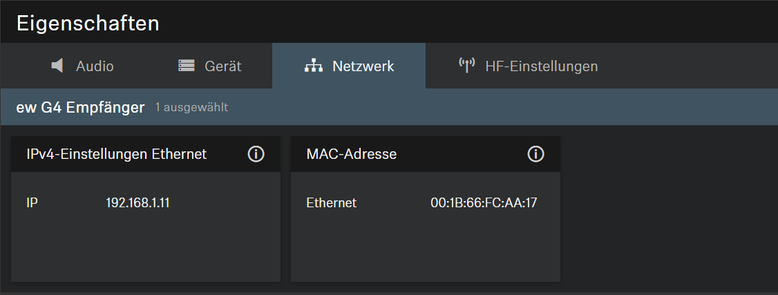 Die folgenden Einstellungen können für drahtlose Verbindungen mit Empfängern und Sendern der Serie evolution wireless G4 und G3 vorgenommen werden.