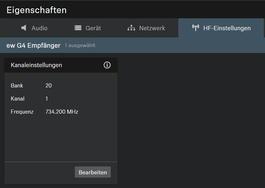 AudioeinstellungenGeräteeinstellungenNetzwerkeinstellungenHF-Einstellungen