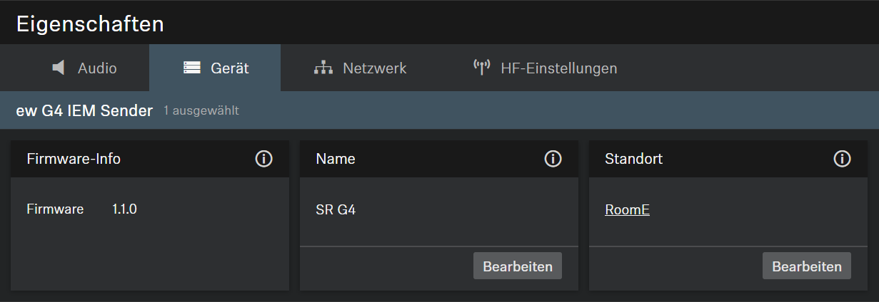 Hier können Sie den Namen eines Geräts bearbeiten. Der Name wird auf dem Gerät gespeichert. Wenn Sie den Namen des Gerätes selbst ändern, wird dieser hier entsprechend angezeigt.