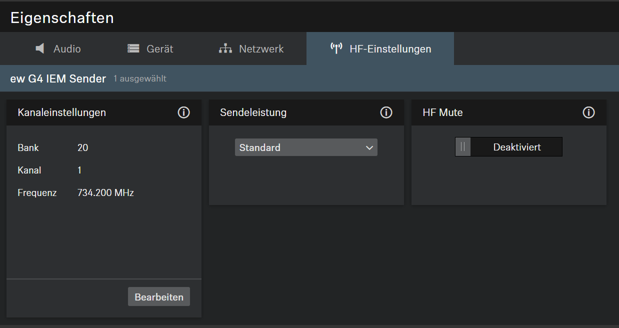 Die folgenden Einstellungen können für drahtlose Verbindungen mit Empfängern und Sendern der Serie evolution wireless G4 und G3 vorgenommen werden.