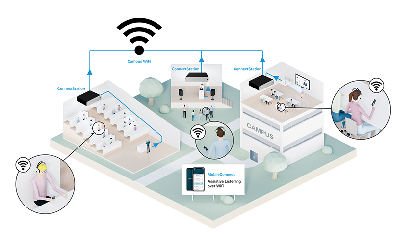 Sennheiser MobileConnect ist eine Lösung zur Hörunterstützung, mit der Sie Audioinhalte über WLAN live und in bester Qualität auf jedes mobile Gerät streamen können.