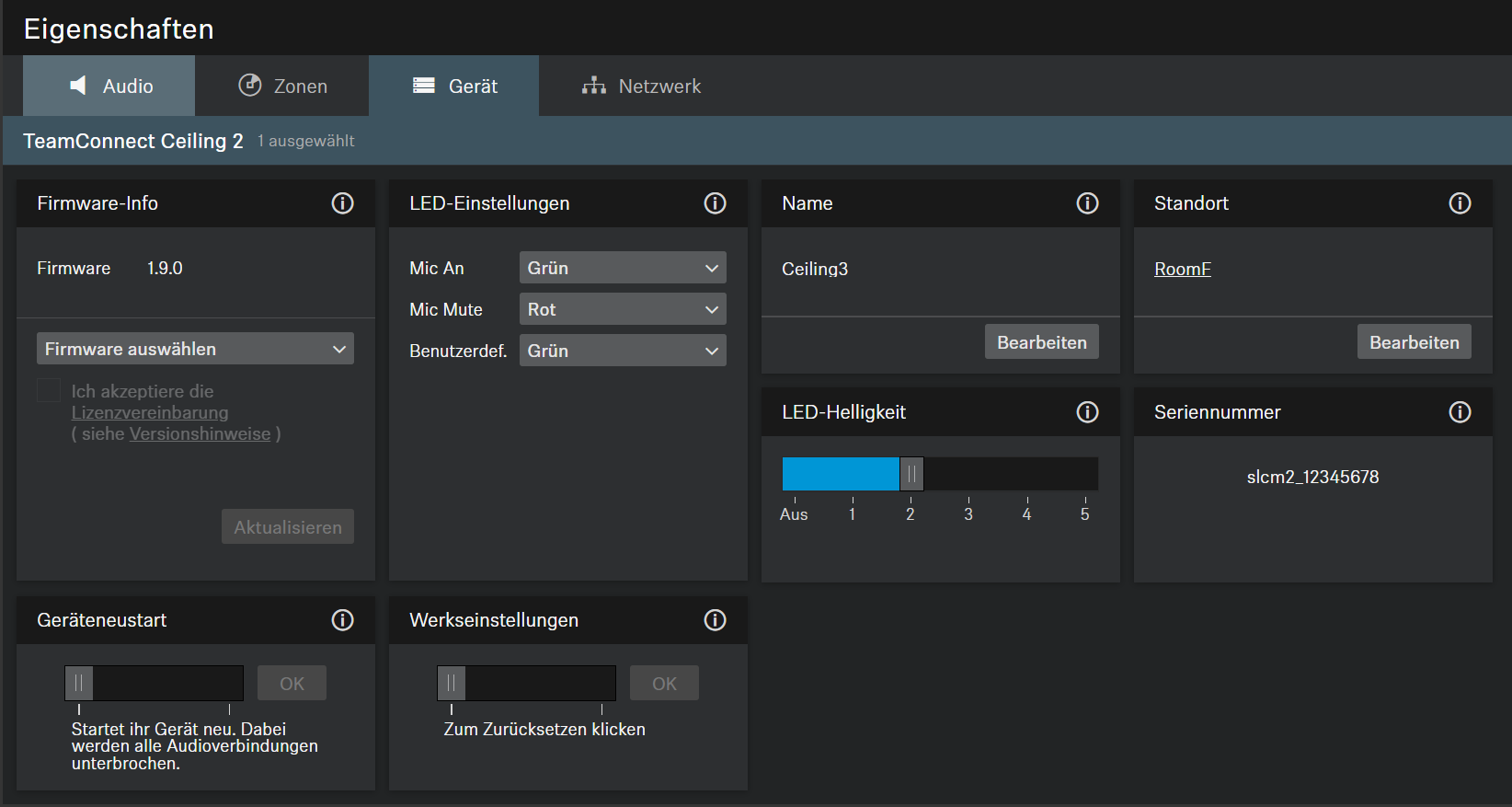 Informationen zum Firmware-Update siehe Aktualisieren der Geräte-Firmware.