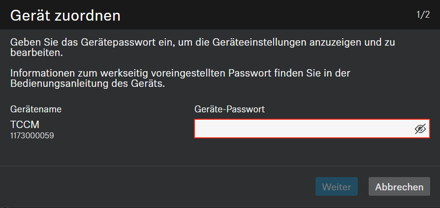 Die Erstkonfiguration des Geräts erfolgt immer über eine direkte Verbindung