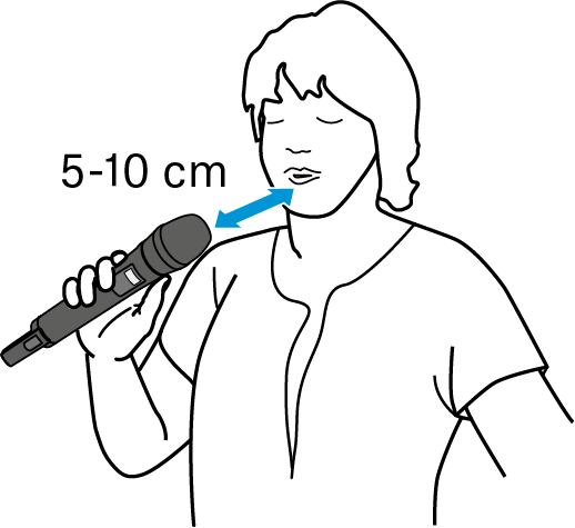 Hold the handheld transmitter approx. 5 to 10 cm in front of your mouth.