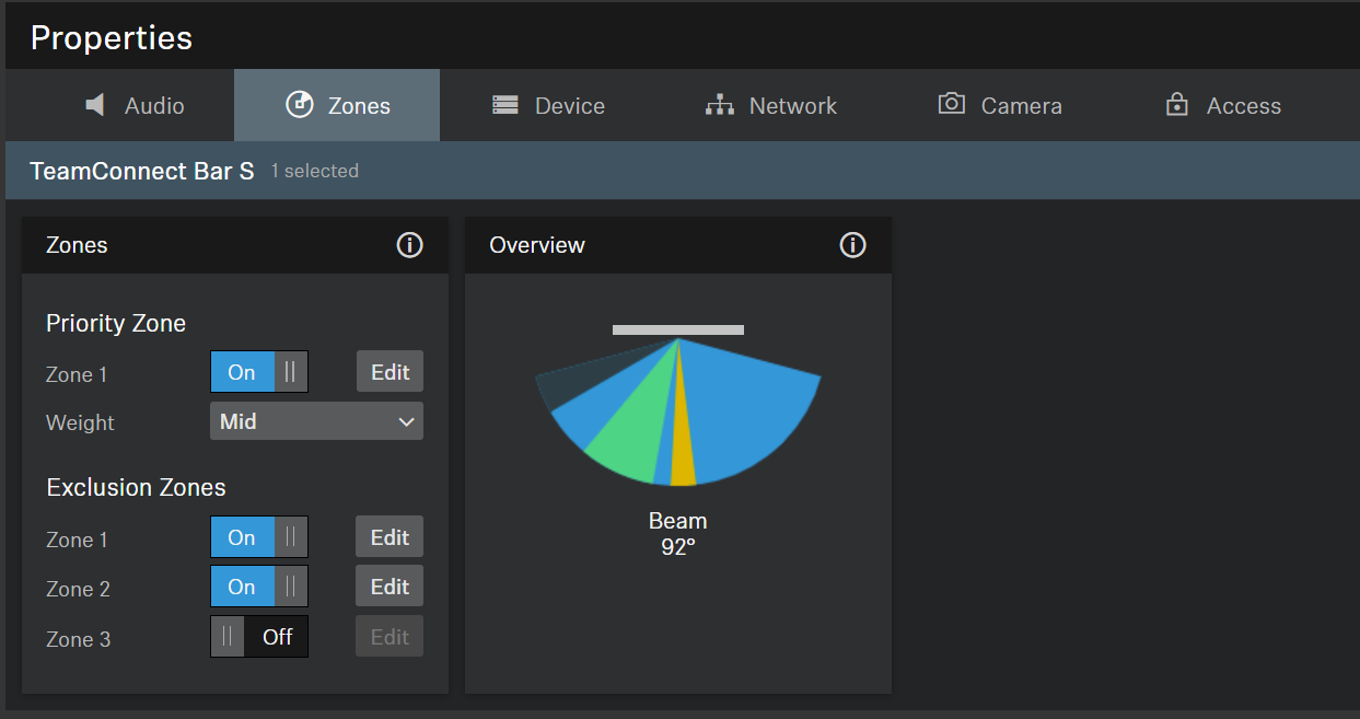 The Priority Zone allows you to set up a zone which will be handled prioritized in case of incoming audio signals from different positions at the same time. This feature can be useful e.g. during conference meetings with an important person involved.