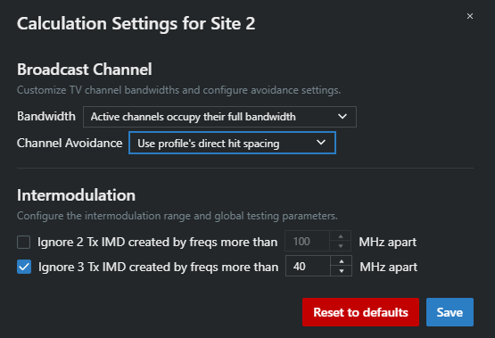 Here you can adjust calculation settings based on scan data, broadcast channel