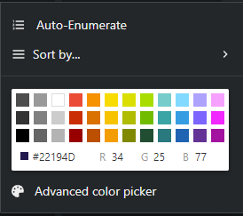Customizing groups You can customize groups by changing colors, adding automatic numbering, and setting sort orders. To customize a group: In the Coordination area, click the group's edit button . A new window appears. Choose between: Auto-Enumerate, which automatically numbers your group Sort by..., to order your group by frequency or group name Advanced color picker, to set a color for your selected group Your group has been customized.
