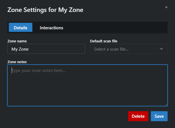 - In this section, you can edit the zone name, select a default scan file, add