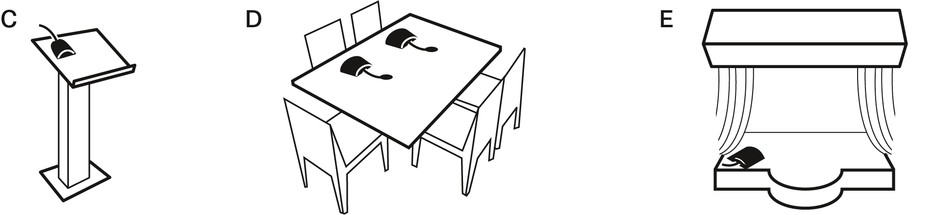- Position D: Lying on the conference table, directed towards the conference participants. Microphone must not be covered by papers, folders or similar objects.