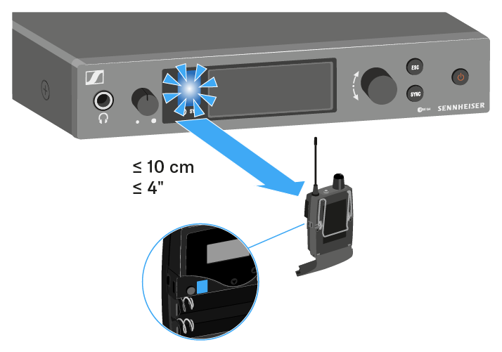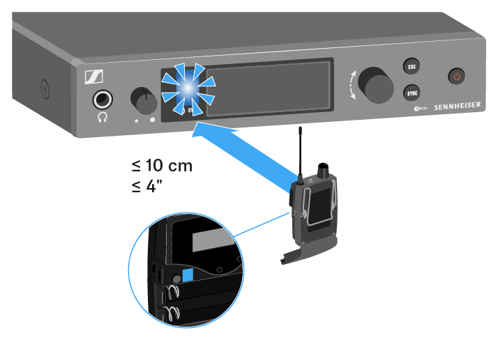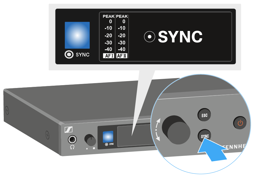 Vice versa, you can use the Sync function to configure the settings for your EK IEM G4 portable receiver directly on your stationary SR IEM G4 transmitter and transfer them to the receivers via the infrared interface.