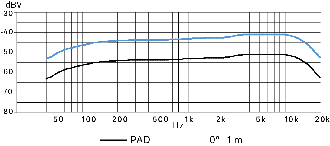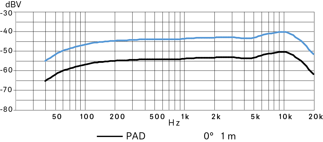 - with preattenuation: 2.2 mV/Pa (factory setting)