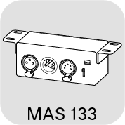 - Via a shielded XLR cable to the MAS 133 switch box with the MAS 1 microphone button this to a mixing console.