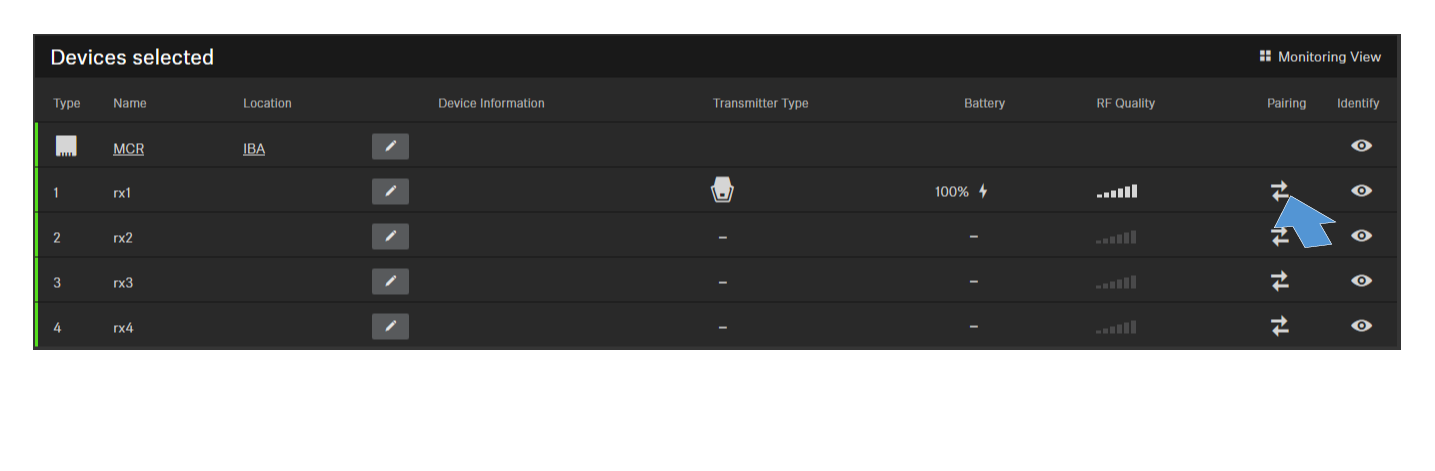 Long-press the PAIR button of the corresponding transmitter until its status LED flashes alternately green and red.