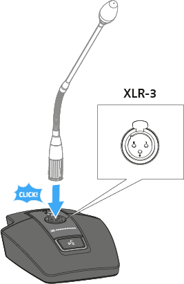 Plug the goose neck microphone into the XLR-3 socket until it locks into place.