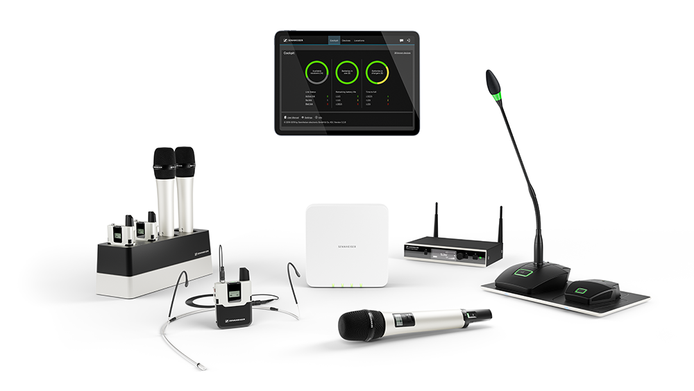 SpeechLine Digital Wireless comprises mobile transmitters (handheld or bodypack) tailored for speech applications, speech optimized condenser microphones (a microphone capsule for the handheld transmitter, a clip-on or headset microphone for the bodypack transmitter) and a rack receiver. The transmitters are powered by rechargeable lithium-ion accupacks with a battery life of more than 15 hours. The accupacks can be recharged with the charger or via USB. SpeechLine Digital Wireless has an automatic frequency management feature that automatically searches for free frequencies on site, thus eliminating the need for time-consuming frequency planning in advance. In addition, the automatic interference management function always ensures a stable wireless connection, and thus provides maximum transmission reliability. The automatic microphone sensitivity adjustment makes the setup even more convenient since there is no need for manual level adjustment. What is more, network integration enables SpeechLine Digital Wireless to be remote controlled and monitored using a media control system (e.g. AMX, Crestron) or the browser-based Sennheiser Control Cockpit software.