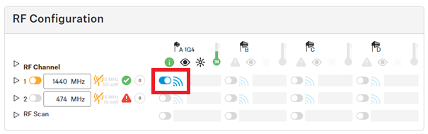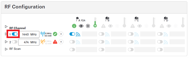 To configure and enable the RF channel: