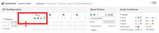 You can see one 1G4 antenna connected, but it cannot be enabled (indicated by a red triangle).
