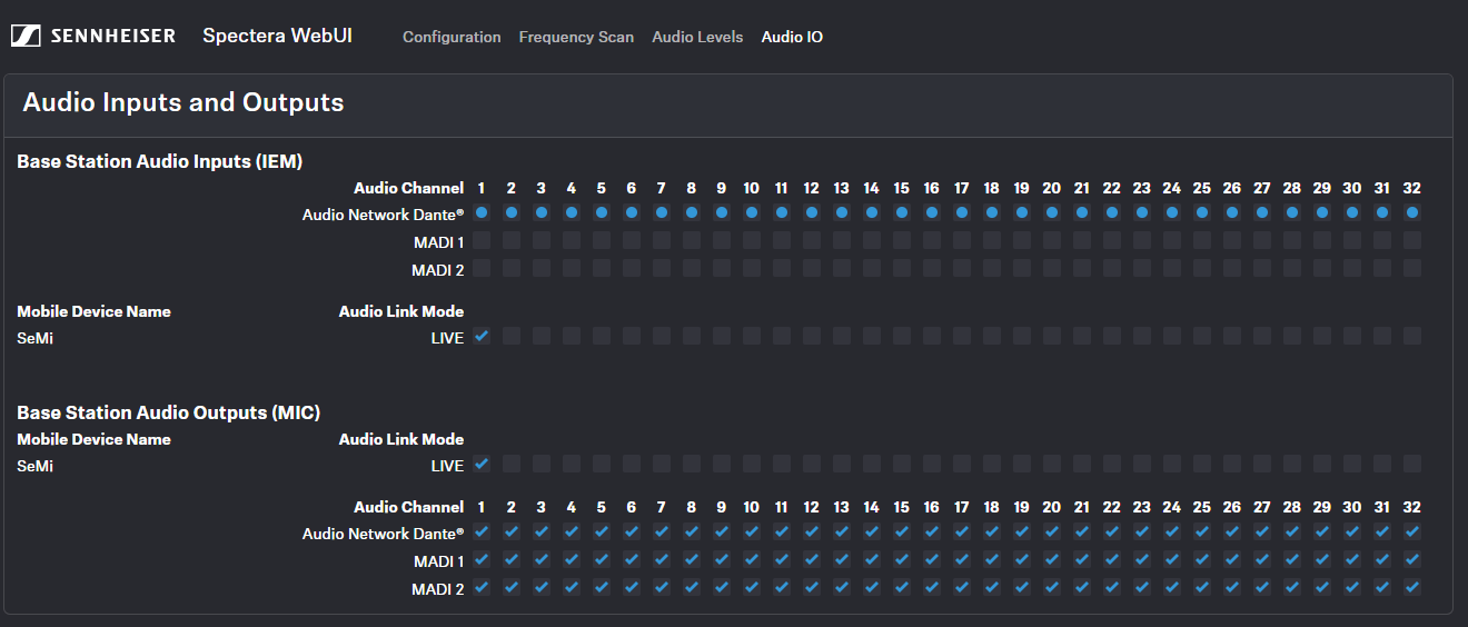 Here you have an overview of all channels at a glance and can assign the audio network input and output for the link channels directly and easily.