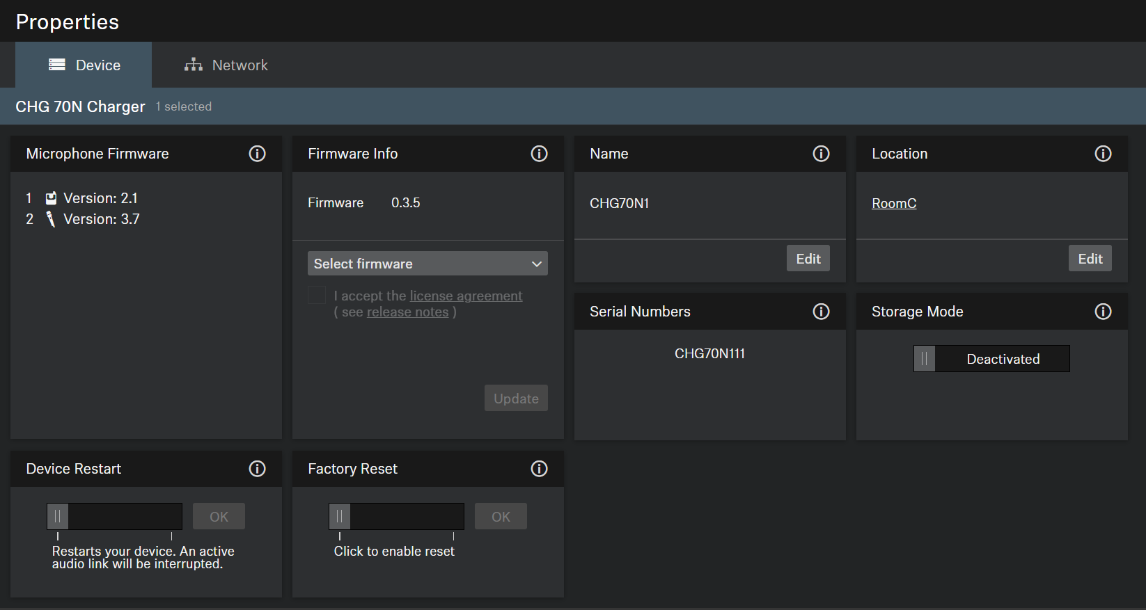 - Custom: Sets the color of the LEDs for a status which can be customized via a media control system using the Sennheiser Sound Control Protocol.