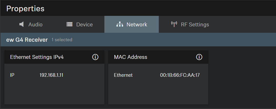Audio SettingsDevice SettingsRF SettingsEthernet SettingsMAC Address