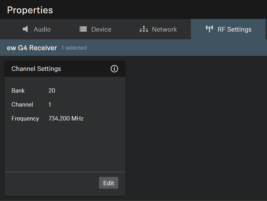Audio SettingsDevice SettingsNetwork SettingsRF Settings