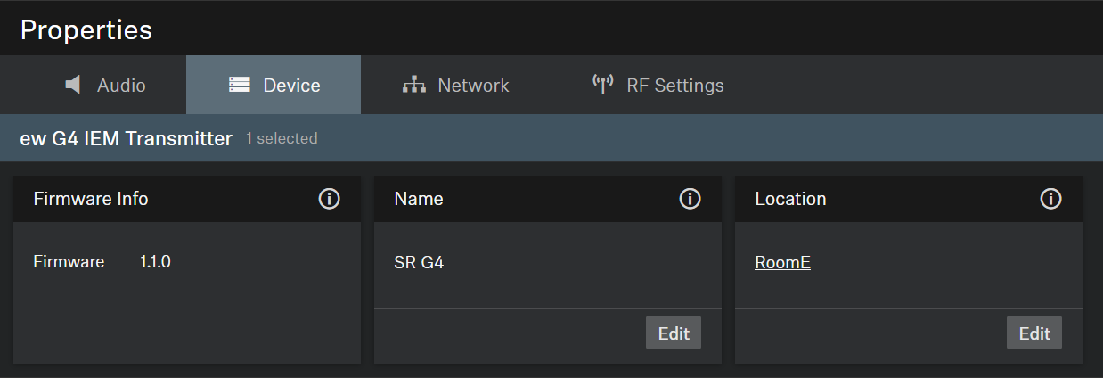 The following settings can be adjusted for wireless links with the receivers and transmitters of the evolution wireless G4 and G3 series.