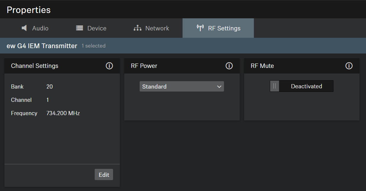 The following settings can be adjusted for wireless links with the receivers and transmitters of the evolution wireless G4 and G3 series.