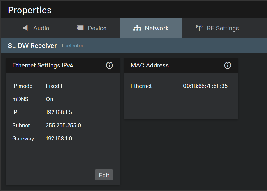 For further information on network settings of the SL Rack Receiver DW please refer to the SpeechLine Digital Wireless system instruction manual: SpeechLine Digital Wireless system instruction manual.