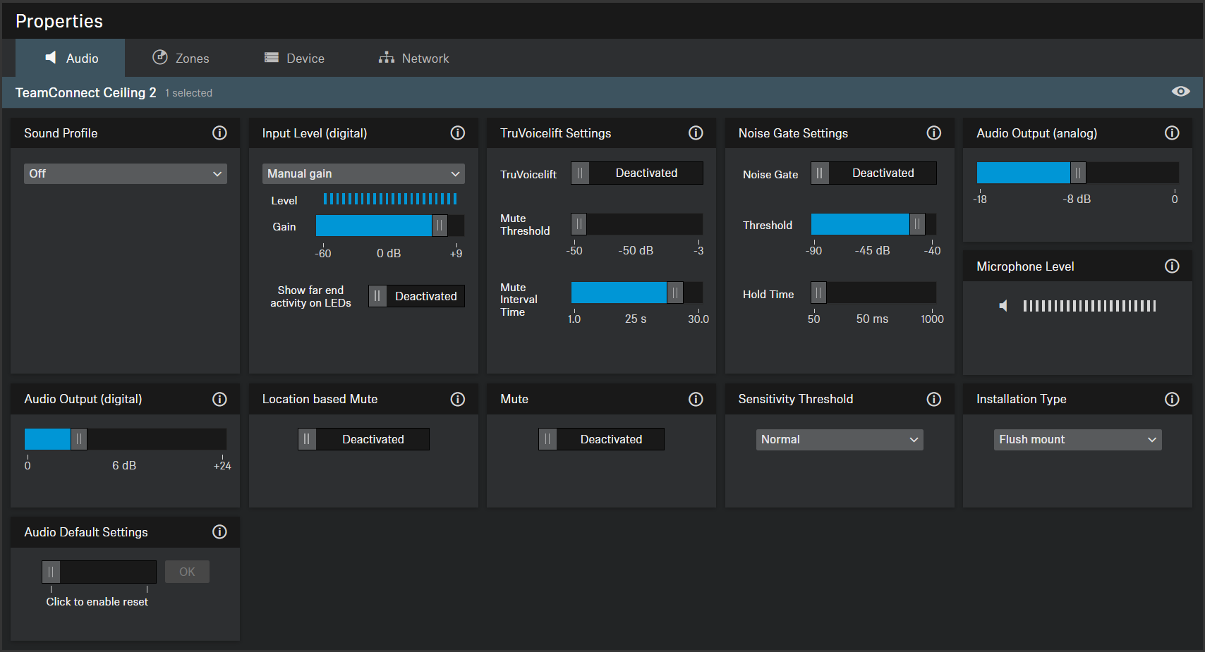 - Flush Mount: recommended setting if the ceiling microphone array has been installed in or directly underneath the ceiling.