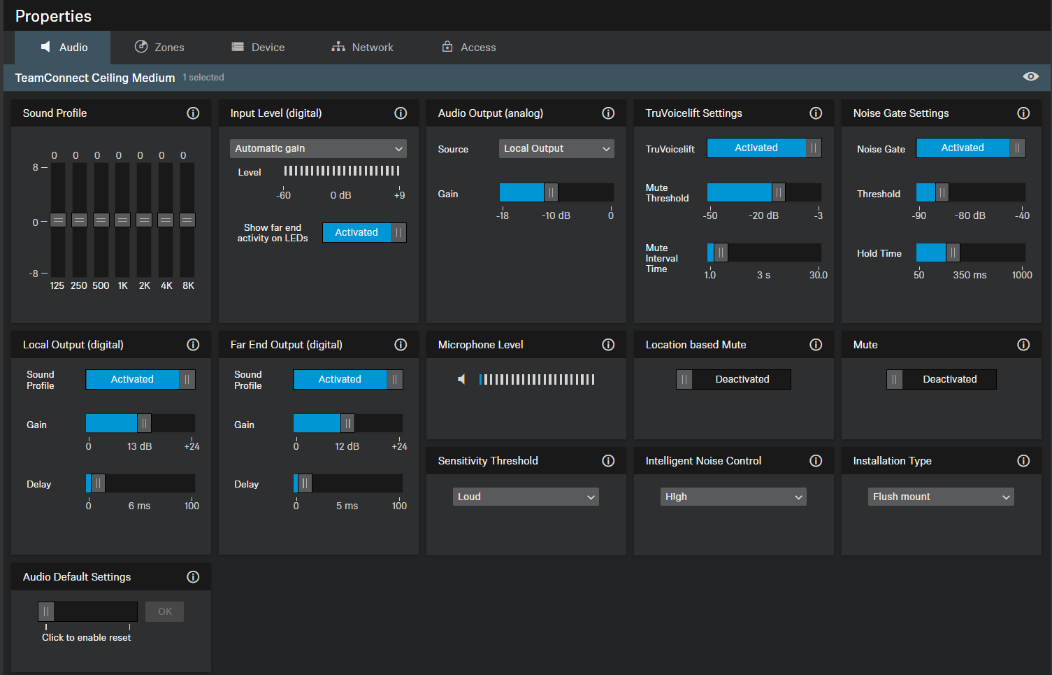 - Flush Mount: recommended setting if the ceiling microphone array has been installed in or directly underneath the ceiling.