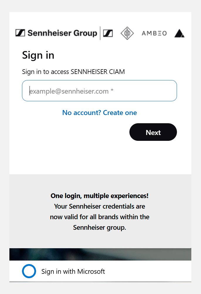 connection to Sennheiser before you can sign in with your Microsoft account. In