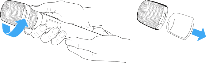 - Desenrosque la jaula superior del módulo de micrófono girándola en sentido no horario.
