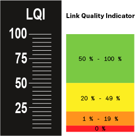 De forma general, para una transmisión segura debe alcanzarse un valor LQI considerablemente superior al 50 %.