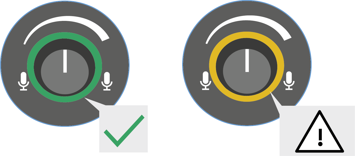 - la señal supera el rango de frecuencia y, por tanto, se sobrecarga (led amarillo). En este caso, puede producirse un ruido desagradable, silbidos o pitidos o una retroalimentación acústica.