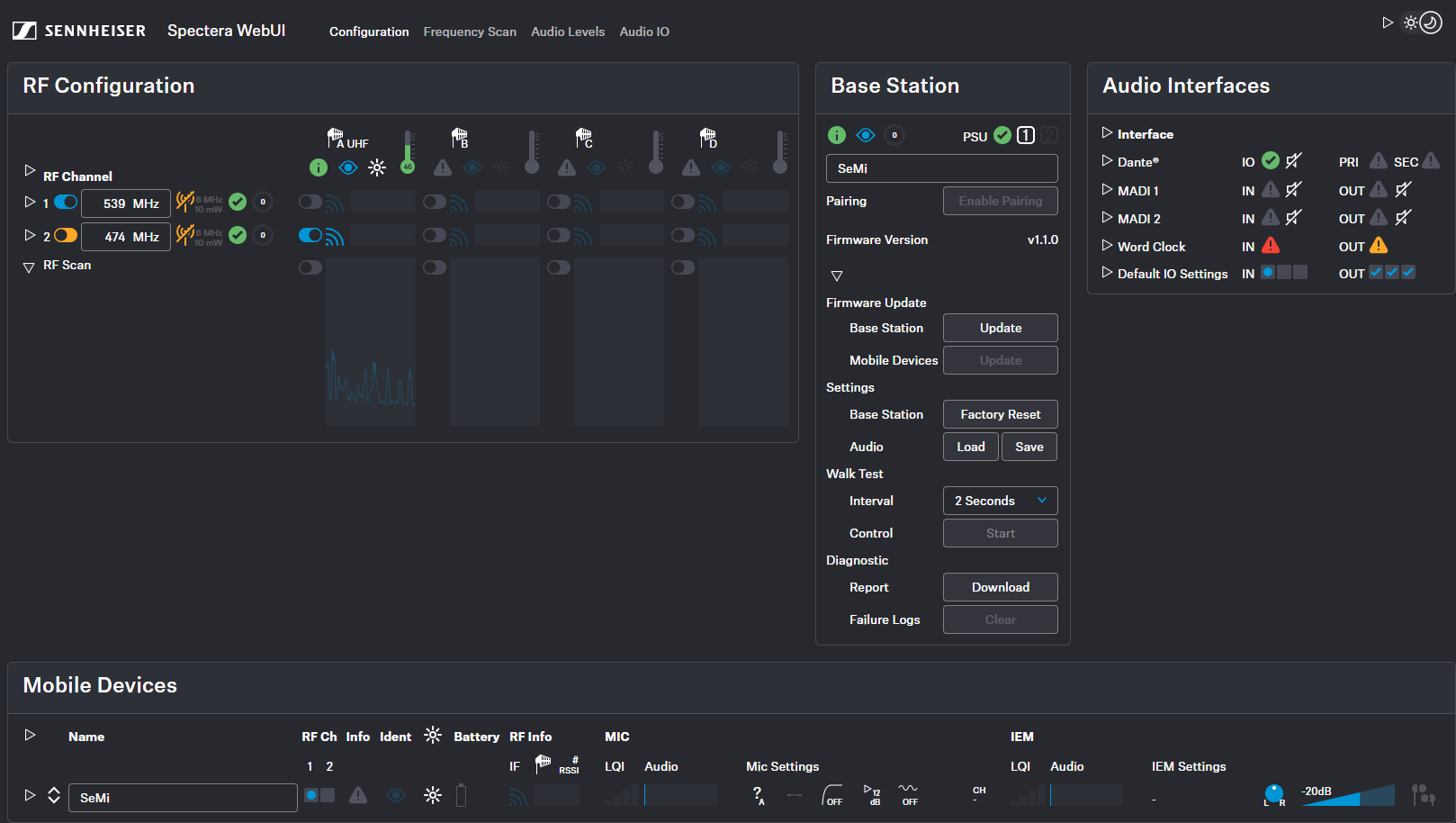 Configuration En el menú de configuración, puede establecer los ajustes esenciales para el canal RF, la antena, la Base Station y los dispositivos móviles. Puede ir a los capítulos que desea consultar pulsando sobre la información relacionada.
