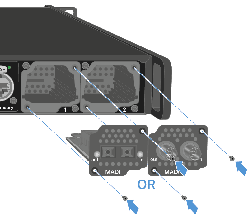Hay dos tipos de tarjetas MADI disponibles; véase Tarjetas MADI.