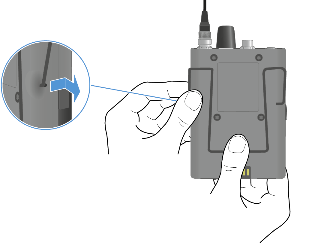 - Presione firmemente el clip de cinturón contra la carcasa con el pulgar.