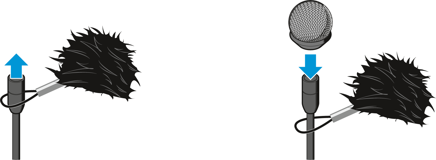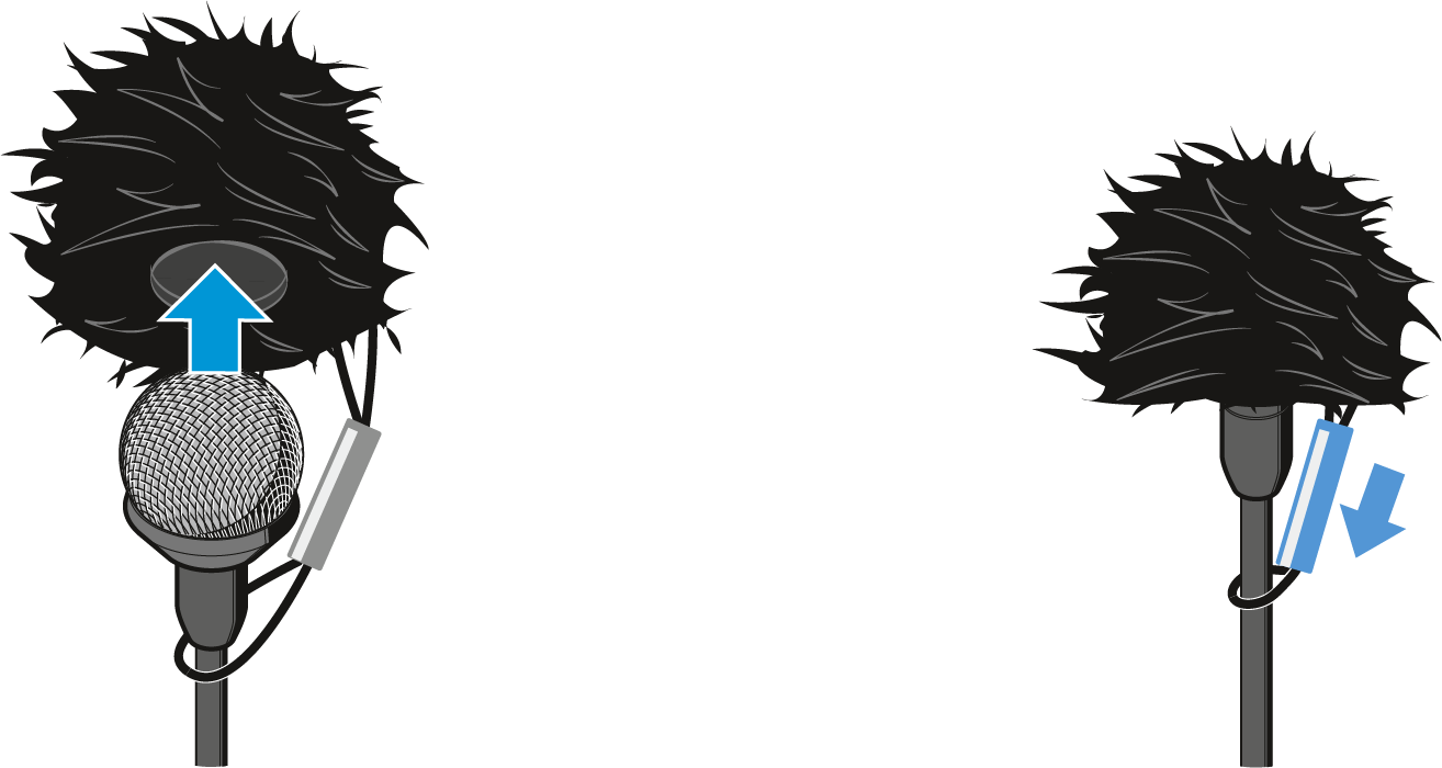 Élargissez doucement l’ouverture de la bonnette à poils et faites-la glisser sur la bonnette en métal du microphone.