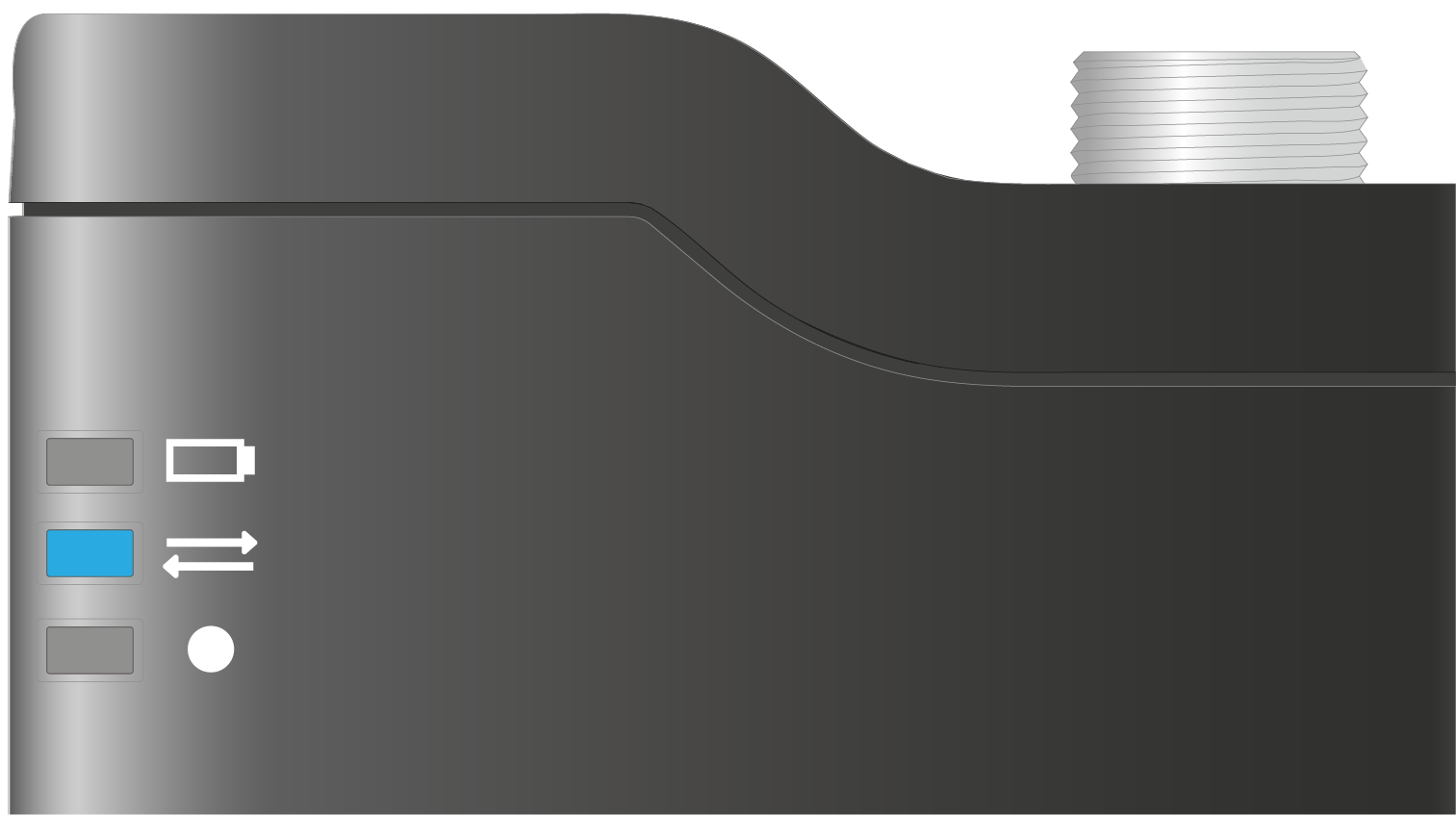 La LED de statut de chargement indique le niveau de chargement du Transmitter.