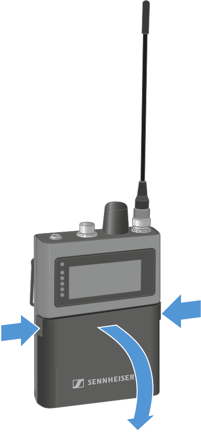 Appuyer sur les deux cliquets et ouvrez le couvercle du compartiment de la batterie.