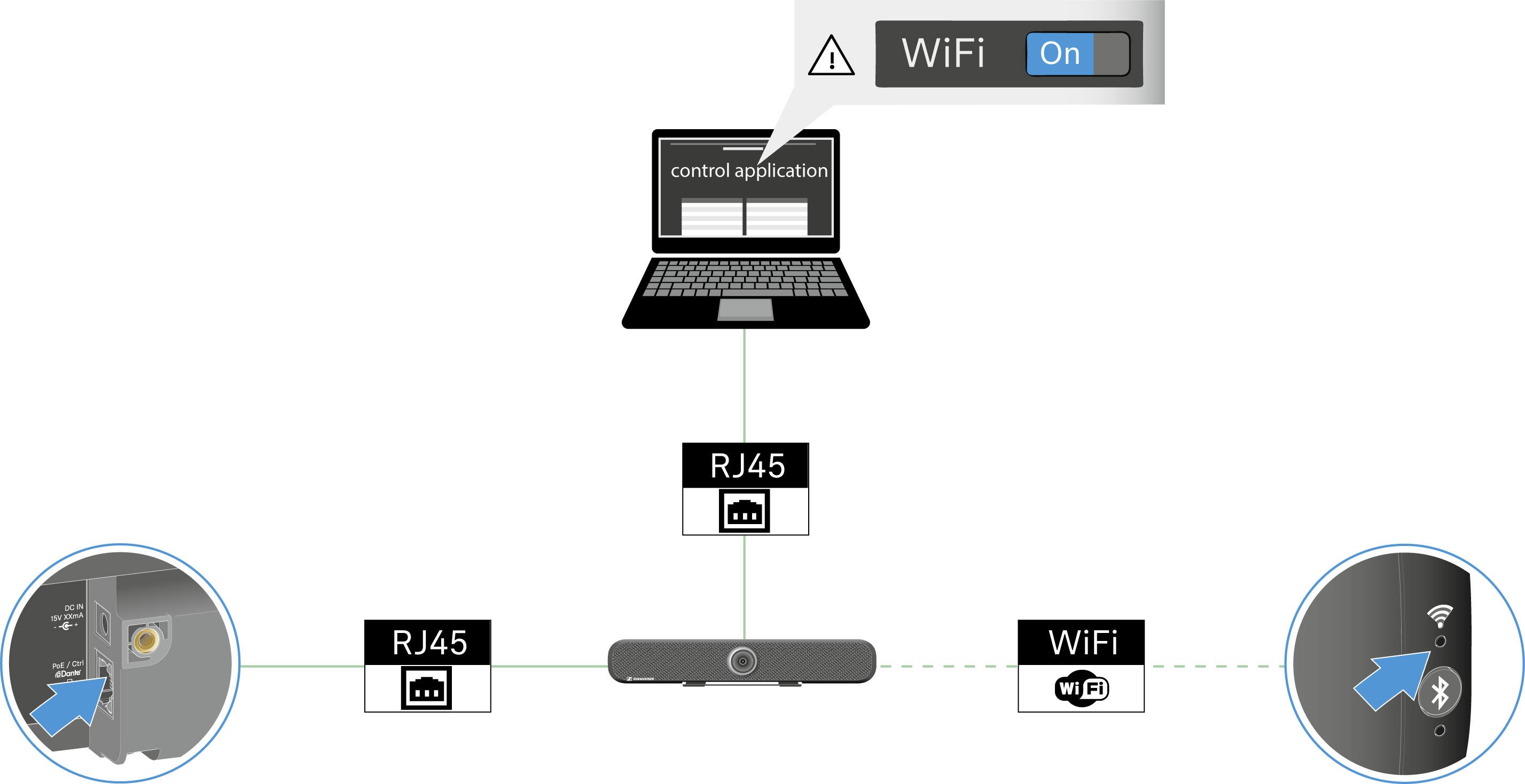 Dans le cas d’un fonctionnement en tant que système de conférence en réseau, vous pouvez commander et surveiller la TC Bar à distance à l’aide du logiciel Sennheiser Control Cockpit.